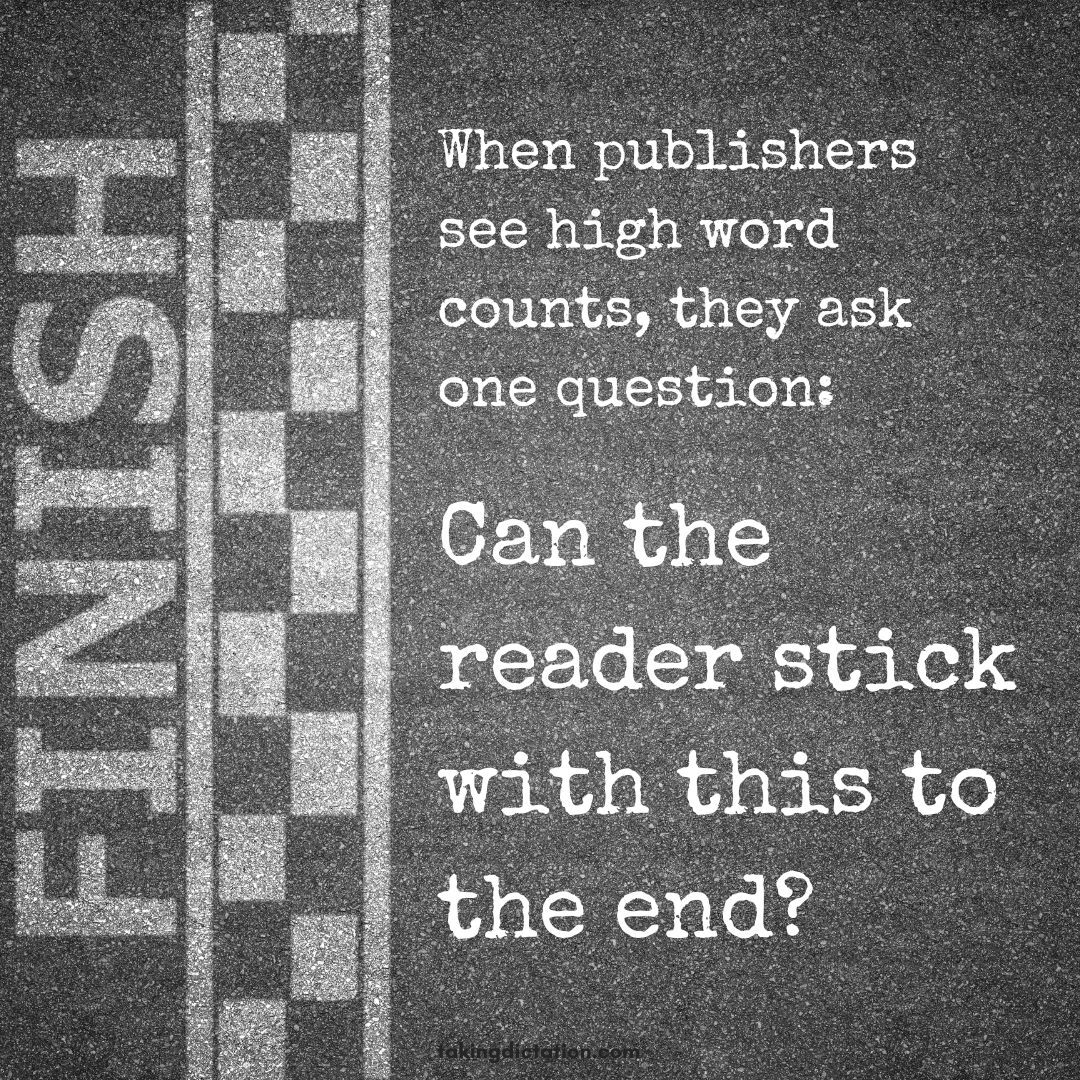 This said, publishers aren’t necessarily opposed to “big” books. But when they see a higher word count, they immediately ask one question: Is the reader going to be able to stick with this to the end?